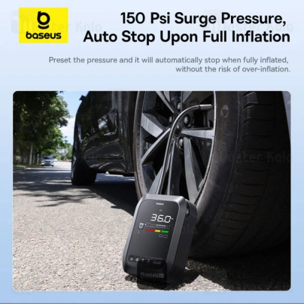 کمپرسور باد داخلی پمپ باد بیسوس C00245903111 قادر است لاستیک خودرو و موتورسیکلت را تا فشار 150 PSI باد کند. وجود نمایشگر دیجیتال با قابلیت نمایش لحظهای فشار، به شما امکان میدهد باد لاستیکها را دقیق و ایمن تنظیم کنید. همچنین قابلیت توقف خودکار پس از رسیدن به فشار تنظیمشده باعث جلوگیری از ترکیدن لاستیک یا مصرف بیرویه انرژی میشود. این ویژگی برای سفرهای طولانی و کنترل ایمنی خودرو بسیار کاربردی است.